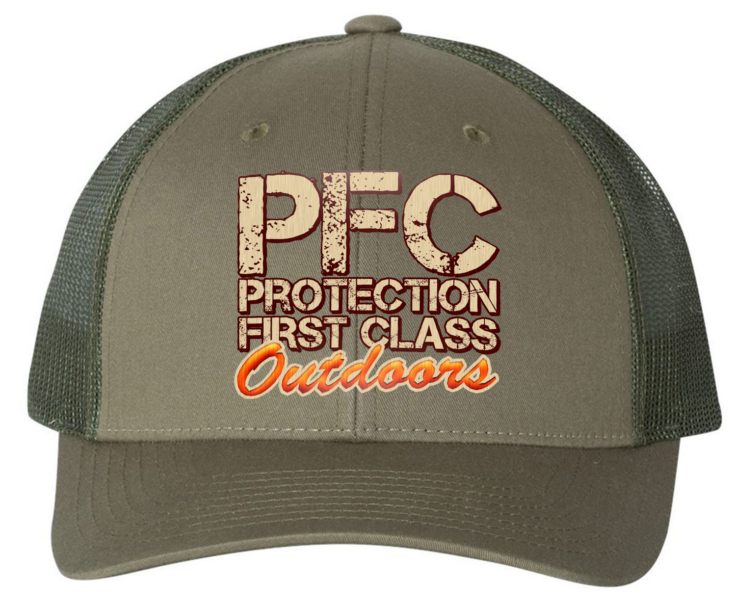 A high-quality Richardson 115 cap with an embroidered PFC Outdoors Logo. One Size.